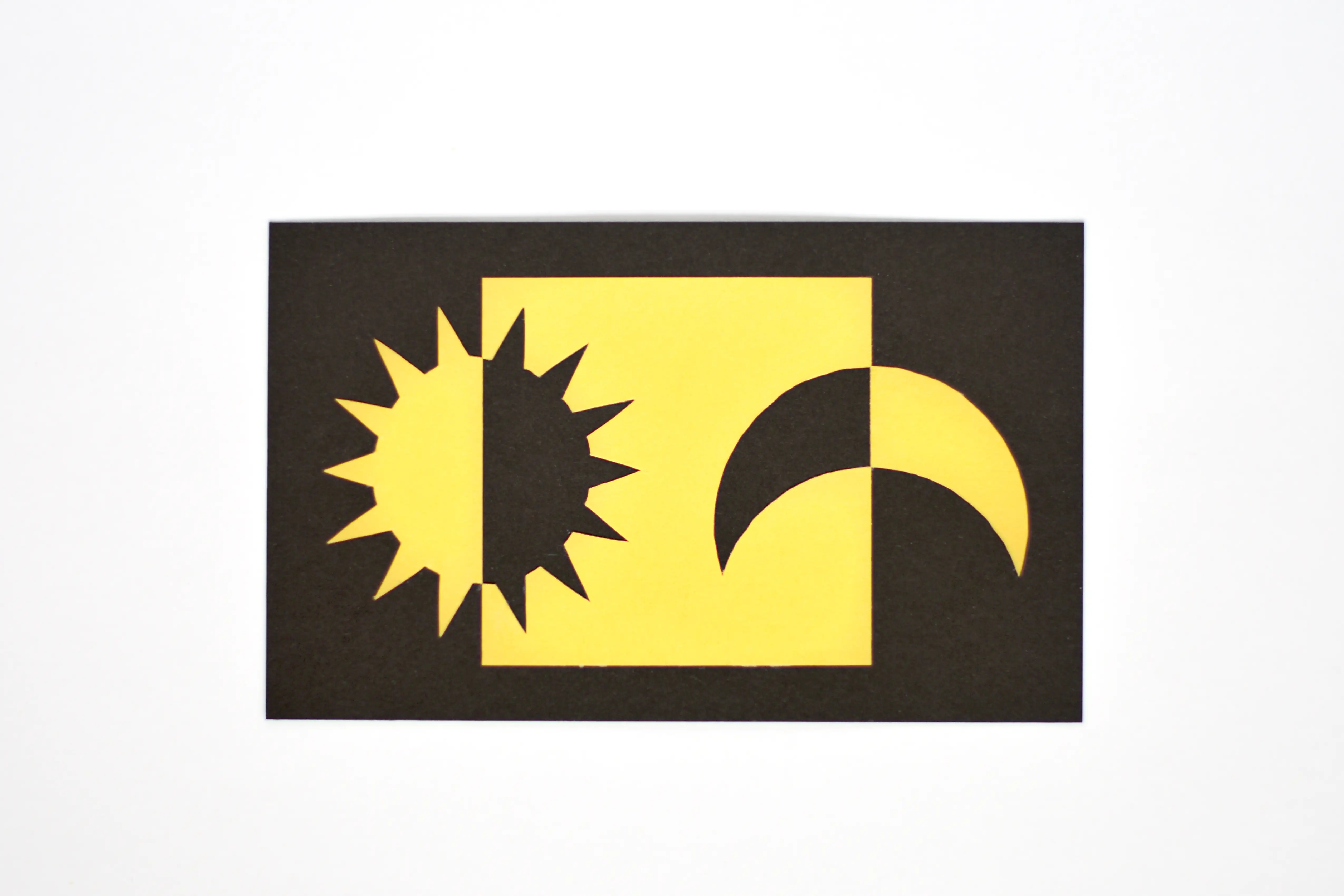 Suno i Luno – notan w formie żółto-czarnej wycinanki z papieru, zainspirowany tańcem słońca i księżyca (w esperanto...