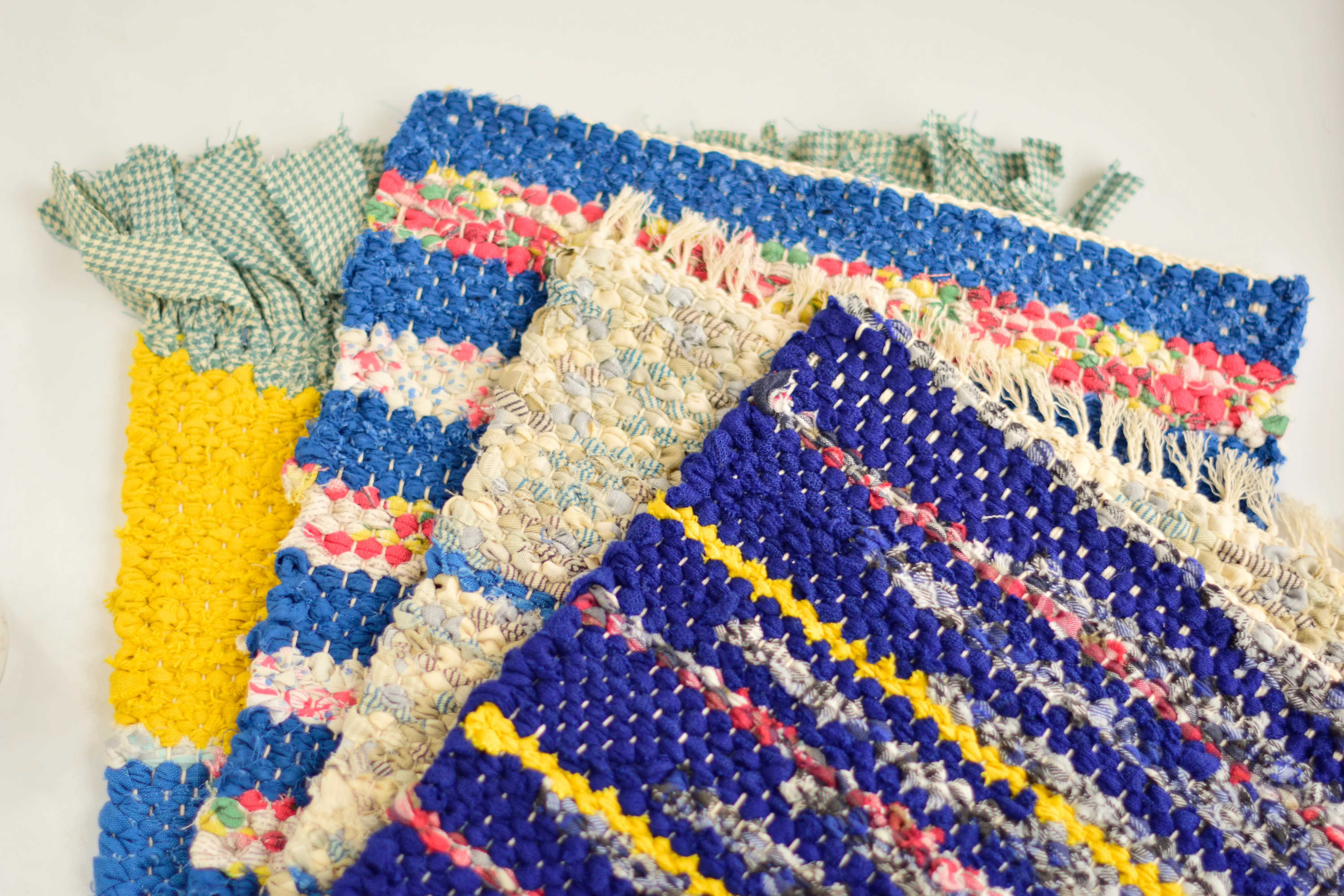 Zniszczonym, dawno nieużywanym ubraniom, pościeli, ściereczkom czy innym tkaninom warto dać drugie życie. Recyklingowe chodniczki to idealny pomysł na przetworzenie niepotrzebnych tekstyliów i stworzenie z nich nie tylko czegoś pięknego, lecz także praktycznego. Tkaniny ze starych sukienek, poszewek oraz obrusów pocięłam na długie paski i wykorzystałam je jako nietypową przędzę tkacką. Moje chodniczki wymiarowo są zbliżone do formatu A3, ale może je utkać w dowolnym rozmiarze. Idealnie sprawdzą się jako oryginalne podkładki stołowe, podkładki pod doniczki lub kwietniki albo minidywaniki podłogowe.