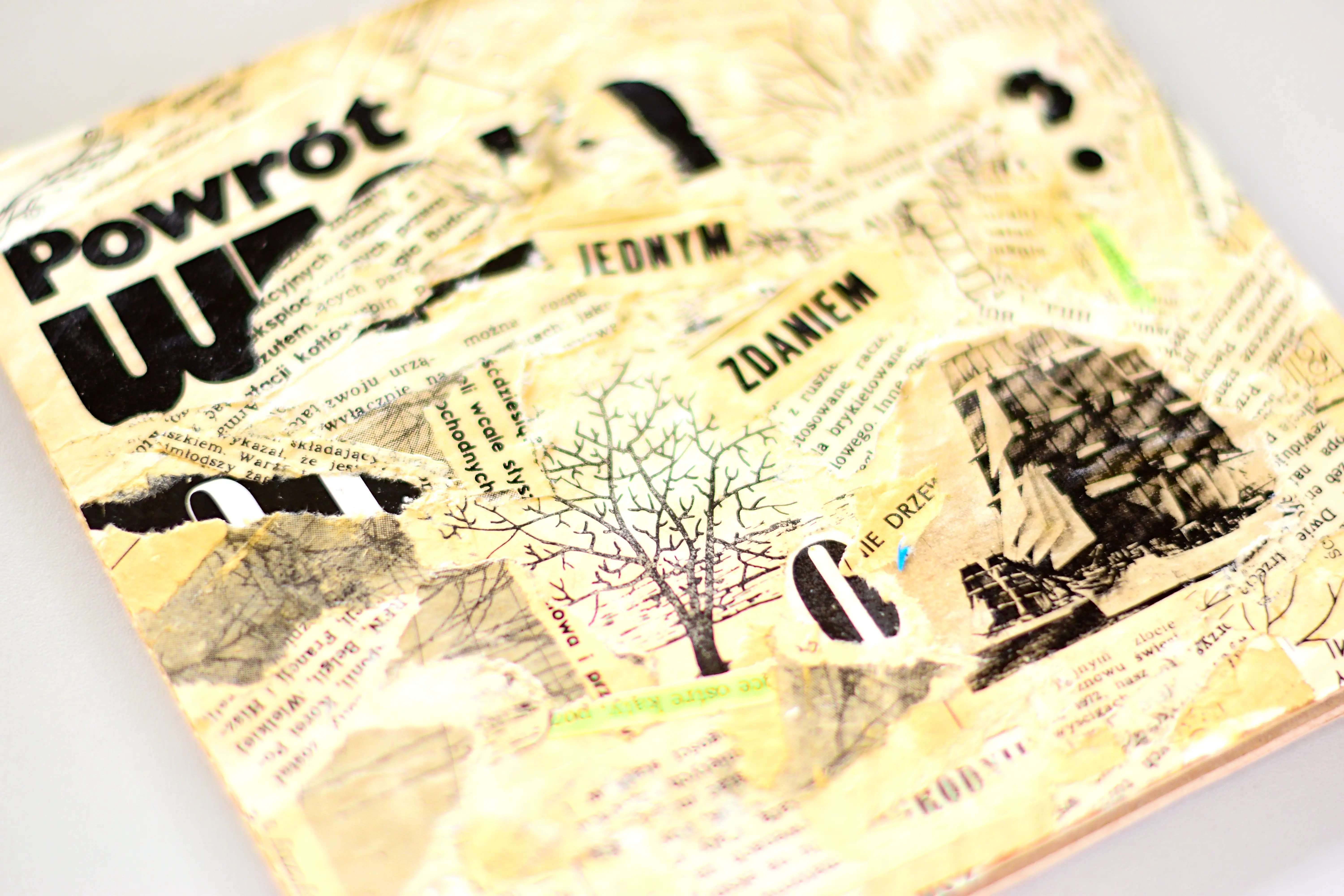 Powrót – dekolaż wykonany z fragmentów starego, bardzo kruchego czasopisma oraz zniszczonej książki. Czarno-białe wycinki najpierw utworzyły grubą warstwę na podkładzie z tektury falistej z odzysku, a następnie różne fragmenty były wycinane i wydzierane, odsłaniając warstwy ukryte pod spodem. Powrót może odnosić się zarówno do morskich wypraw, jak i nadejścia wiosny. Może oznaczać odkrycia podróżników i ich powroty oraz dotarcie do najgłębszych warstw, powrót do początku.