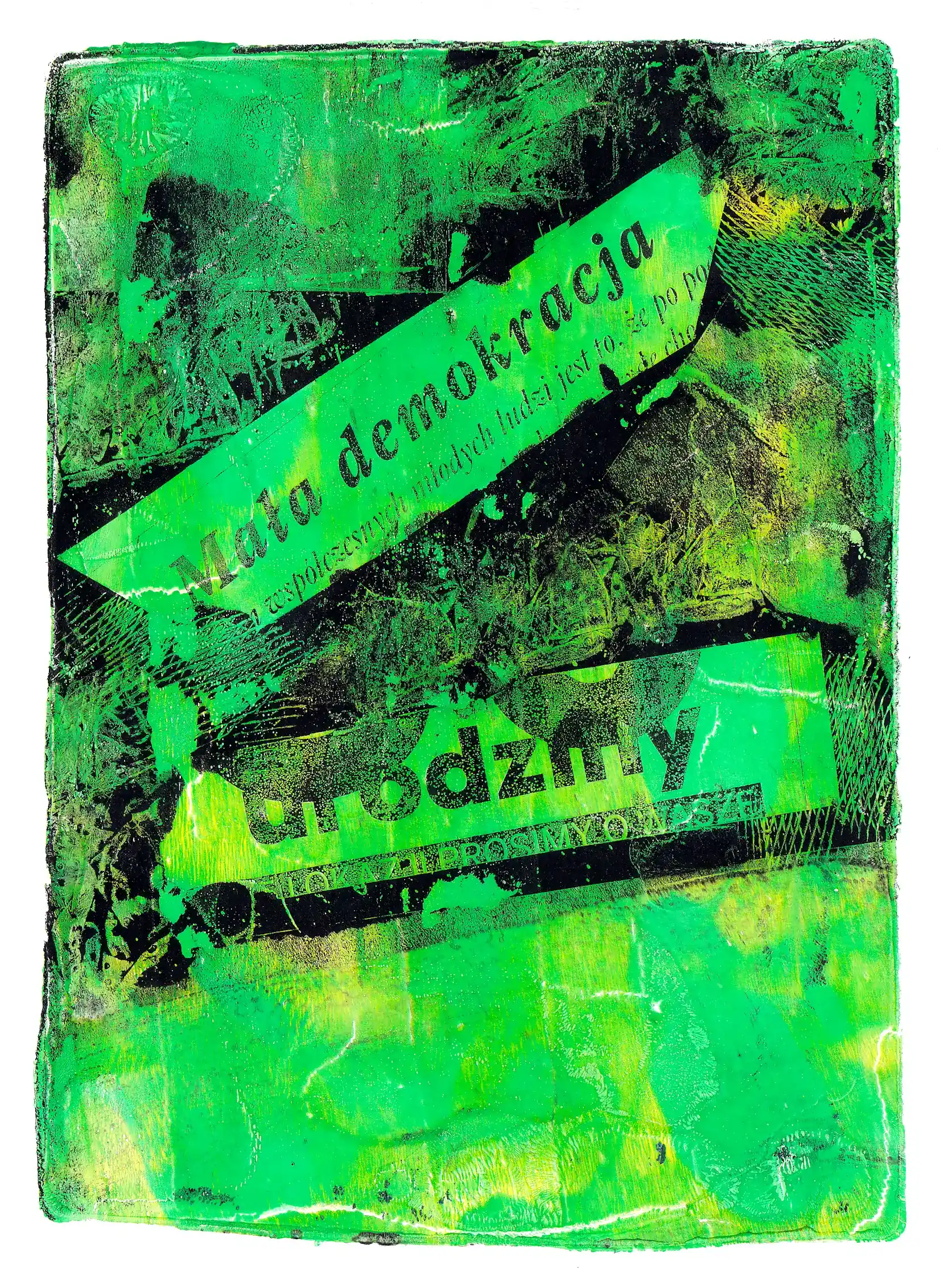 Technika: monotypia na płytce żelowej (akryl na papierze)
