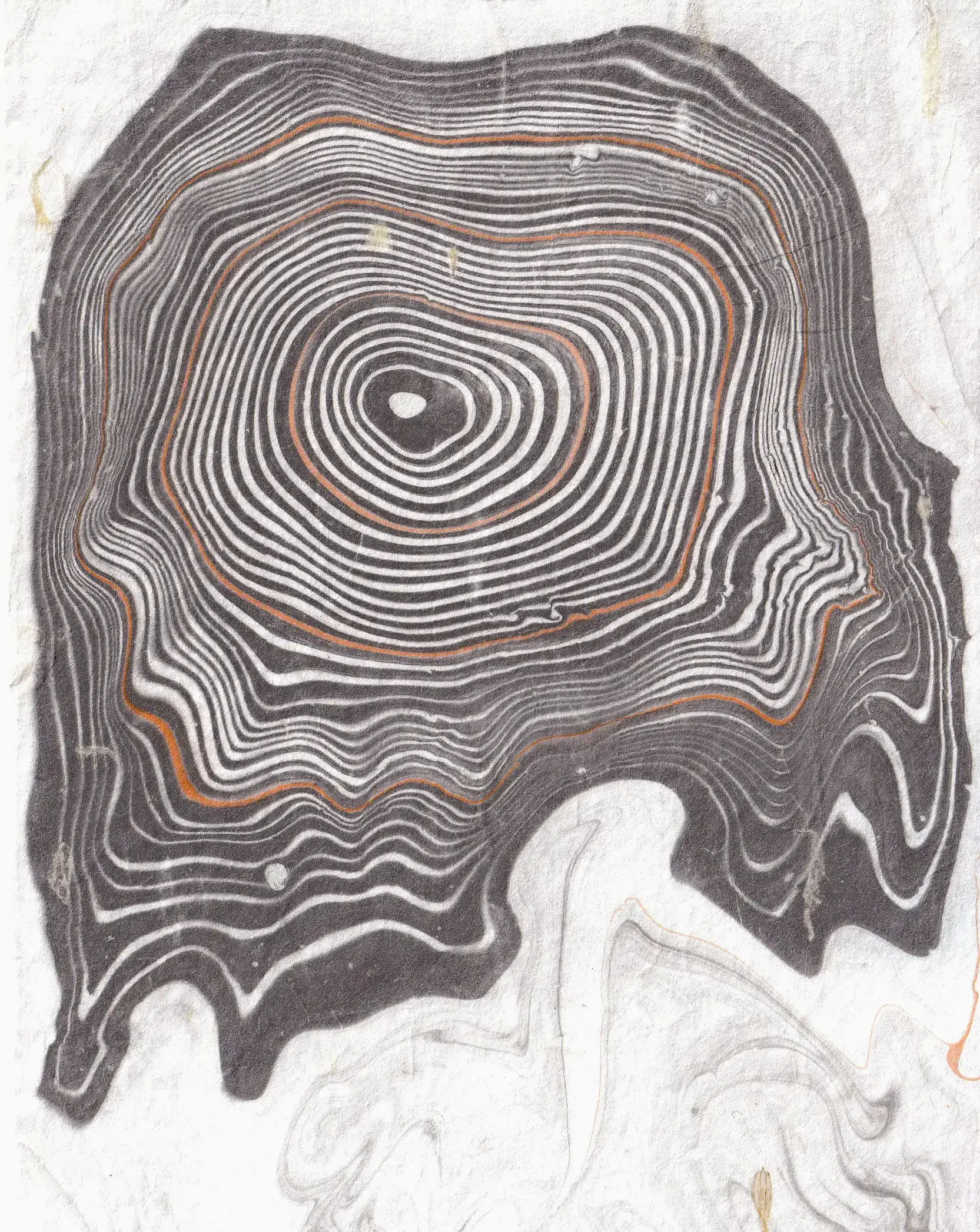 Technika: monotypia w technice suminagashi (tusze na papierze)