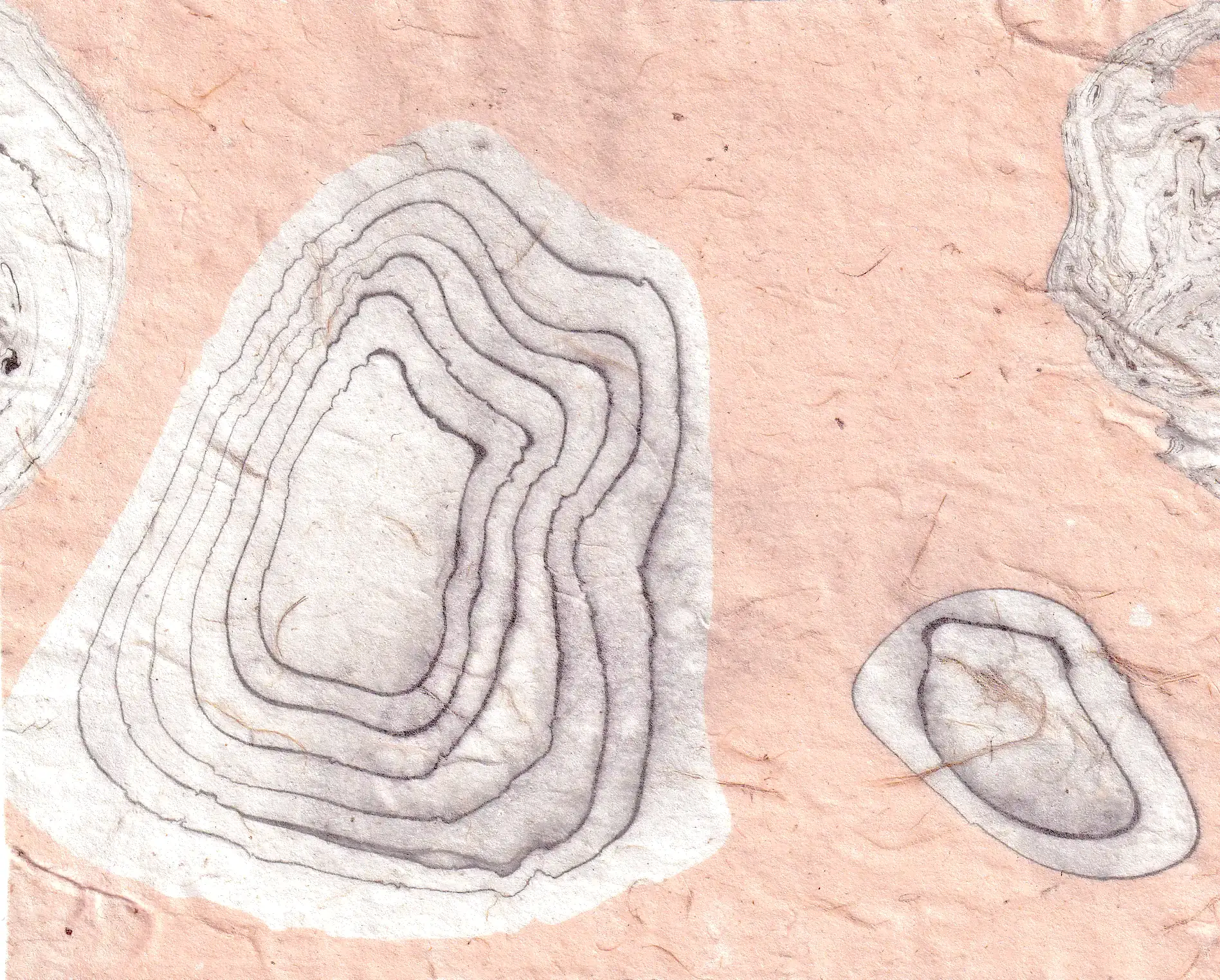 Mitologie – seria prac wykonanych ręcznie w technice suminagashi. Subtelne wykorzystanie koncentrycznie rozchodzących się linii oraz delikatnych kolorów, poza czernią i bielą tradycyjnego suminagashi, pozwoliło na uzyskanie grafik mających klimat nierealistycznego, mitycznego świata. W chmurze wiszącej nad skałą mieszka pewne bóstwo, po plaży pełnej kamieni i skamielin stąpał przed chwilą jakiś mocarny heros. W ostatniej grafice spogląda na nas cyklop, w surrealistyczno-symbolicznym przedstawieniu.