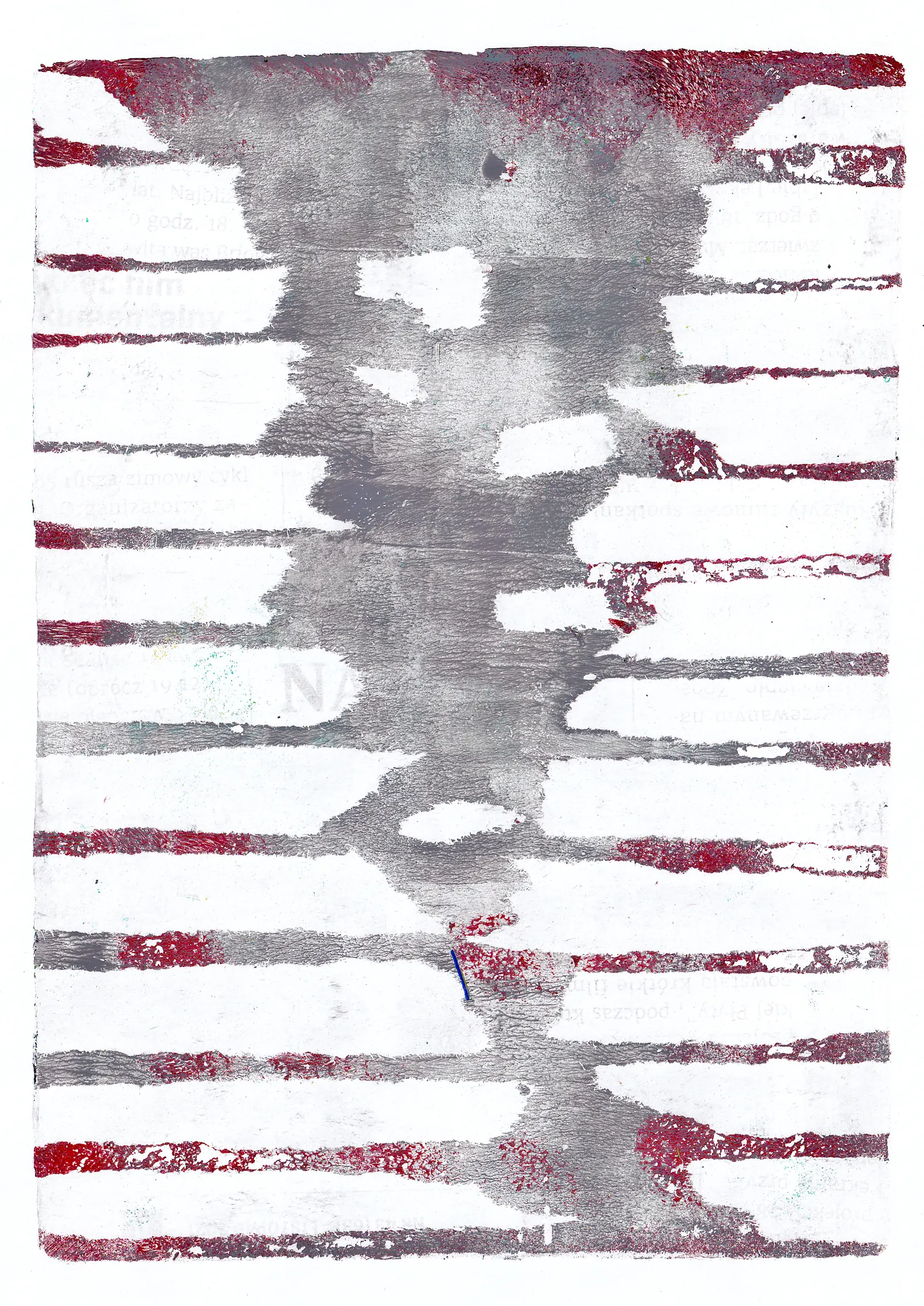 Technika: monotypia na płytce żelowej (akryl na papierze)