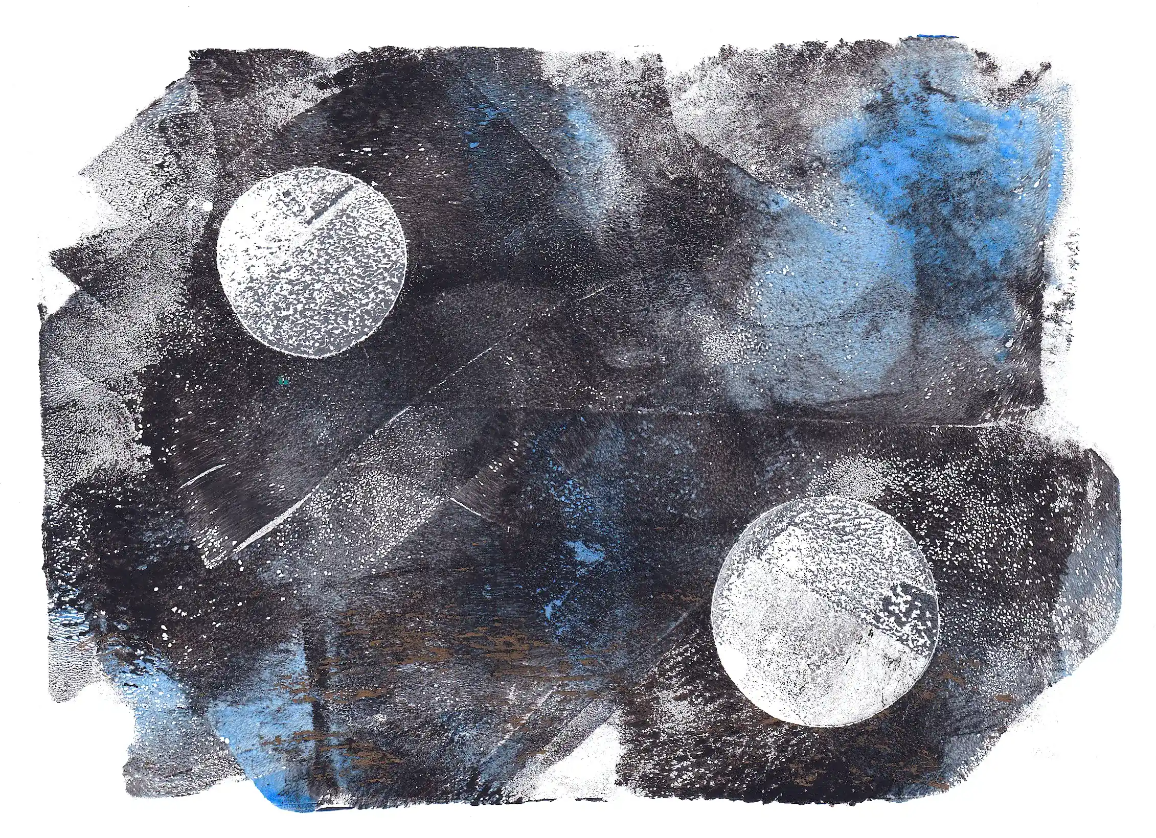 Technika: monotypia na płytce żelowej (akryl na papierze), seria trzech prac