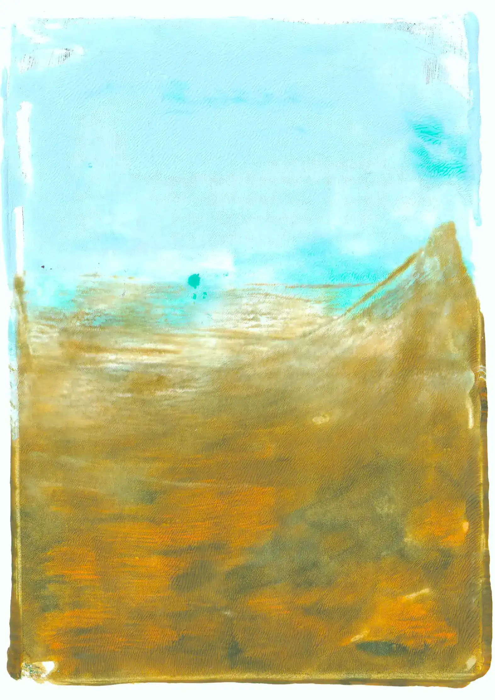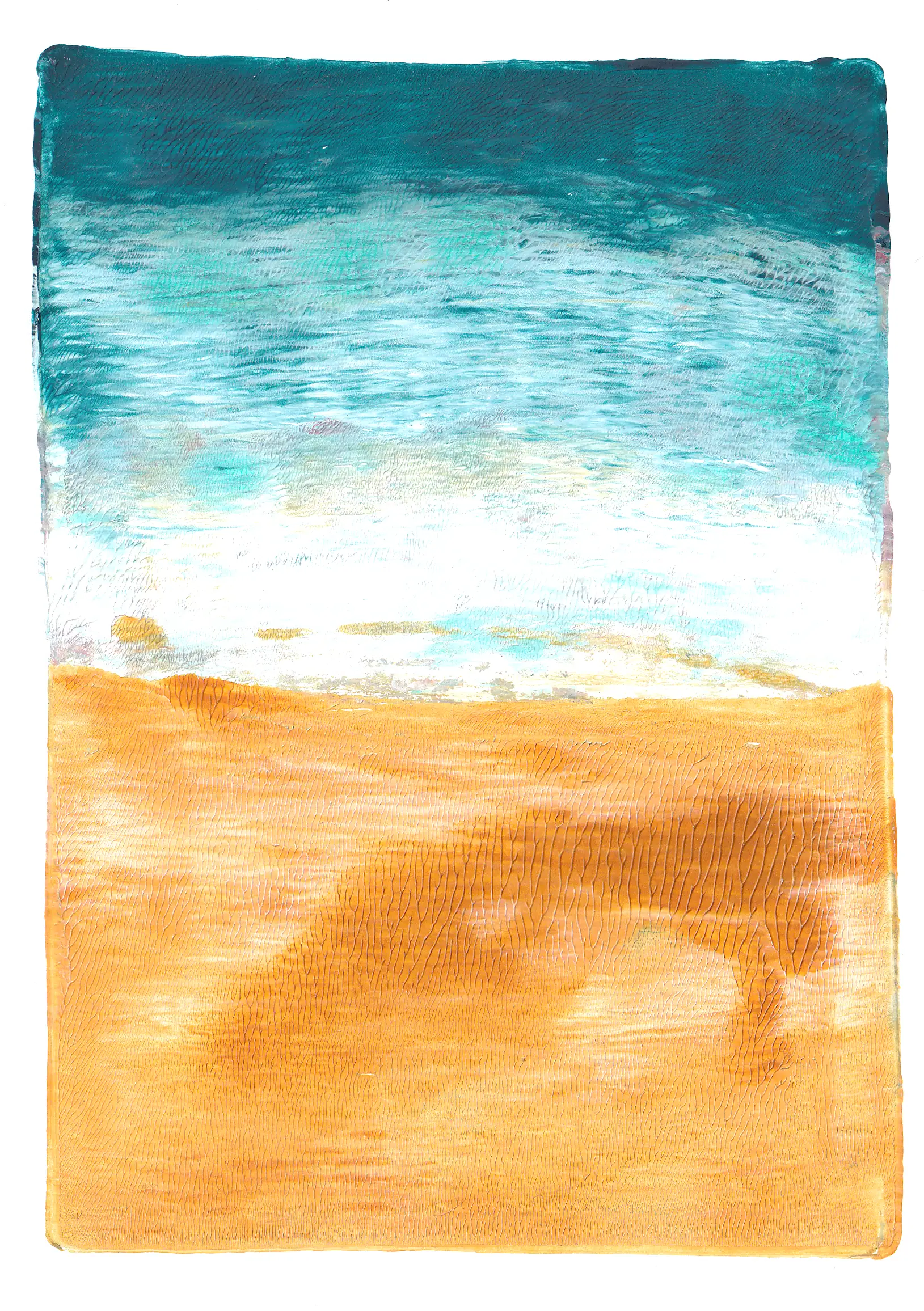 Powiedz to morzu – seria prac wykonanych ręcznie w technice monotypii. Eksploruję w niej dynamikę morskiego krajobrazu. Piasek miesza się z wodą, woda miesza się z niebem.