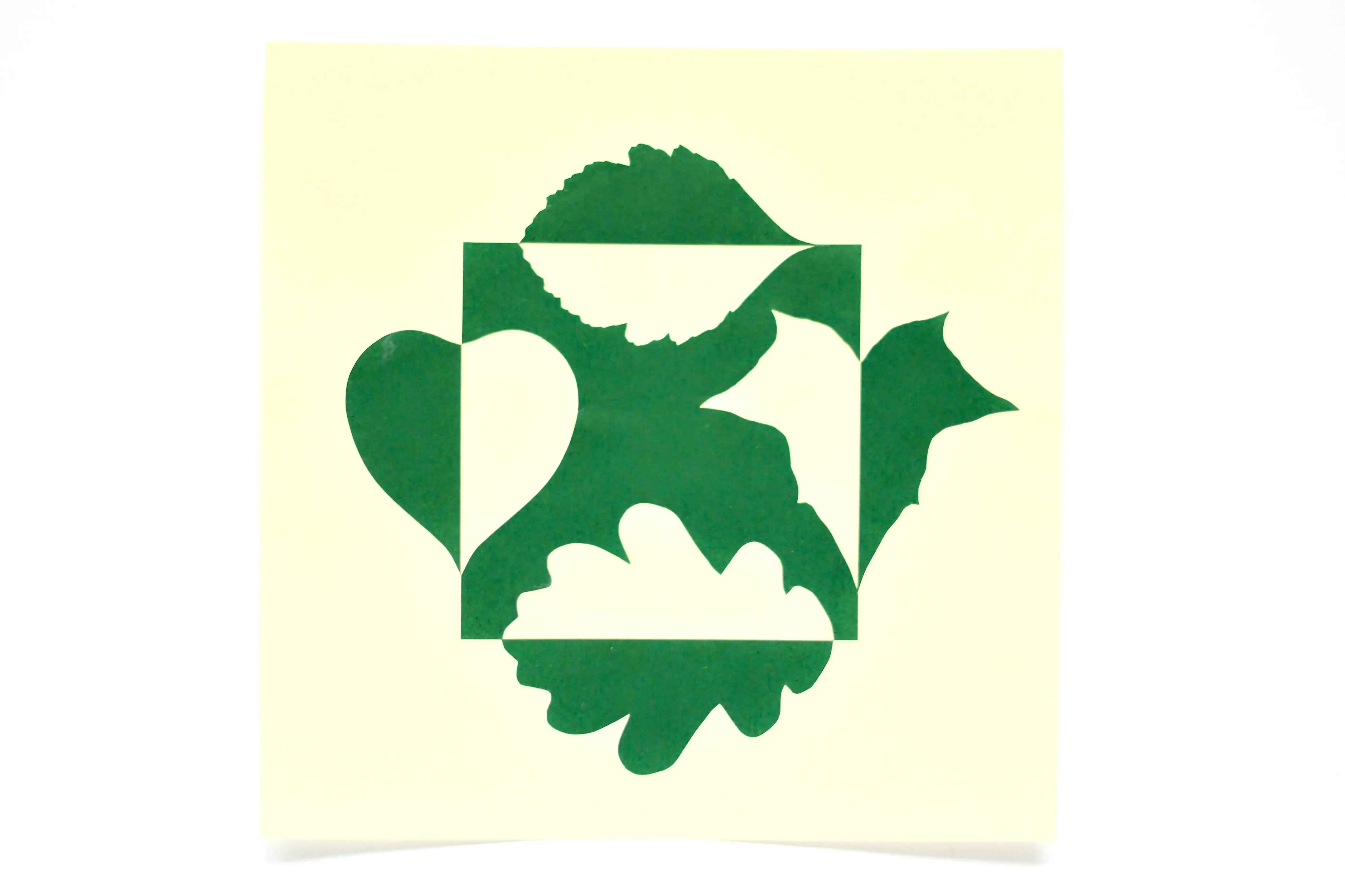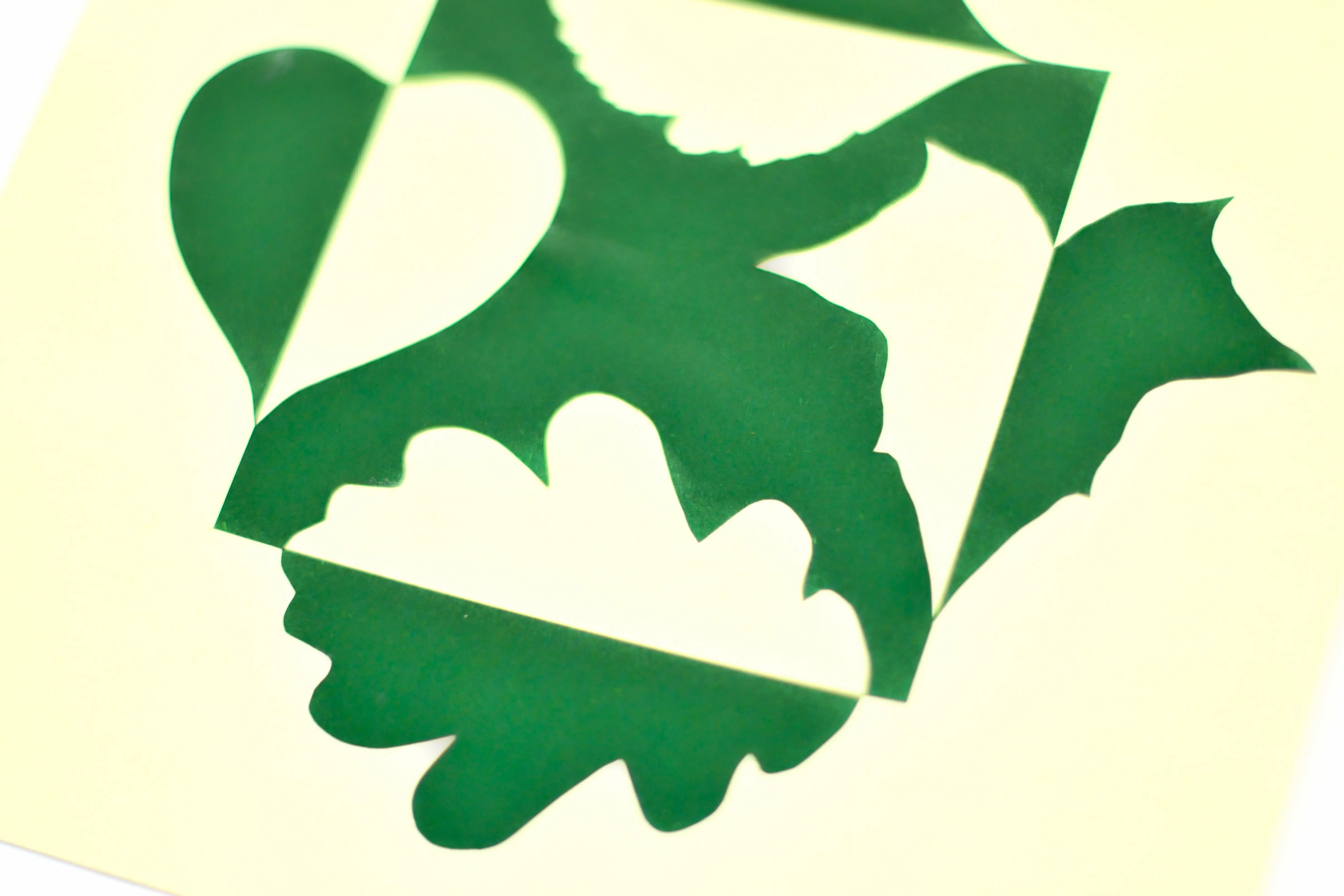 Technika: kremowo-zielona wycinanka z papieru zgodna z koncepcją notan