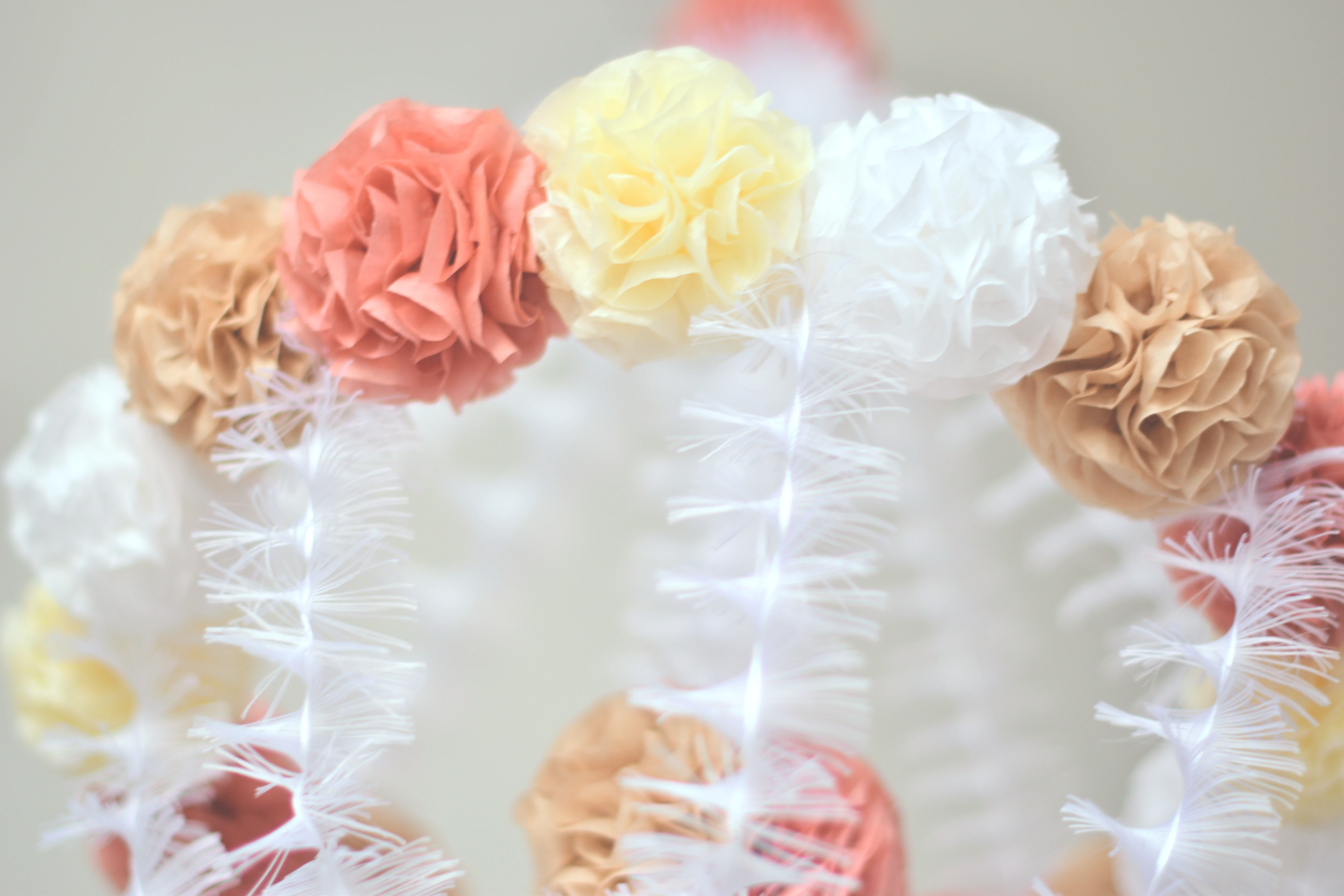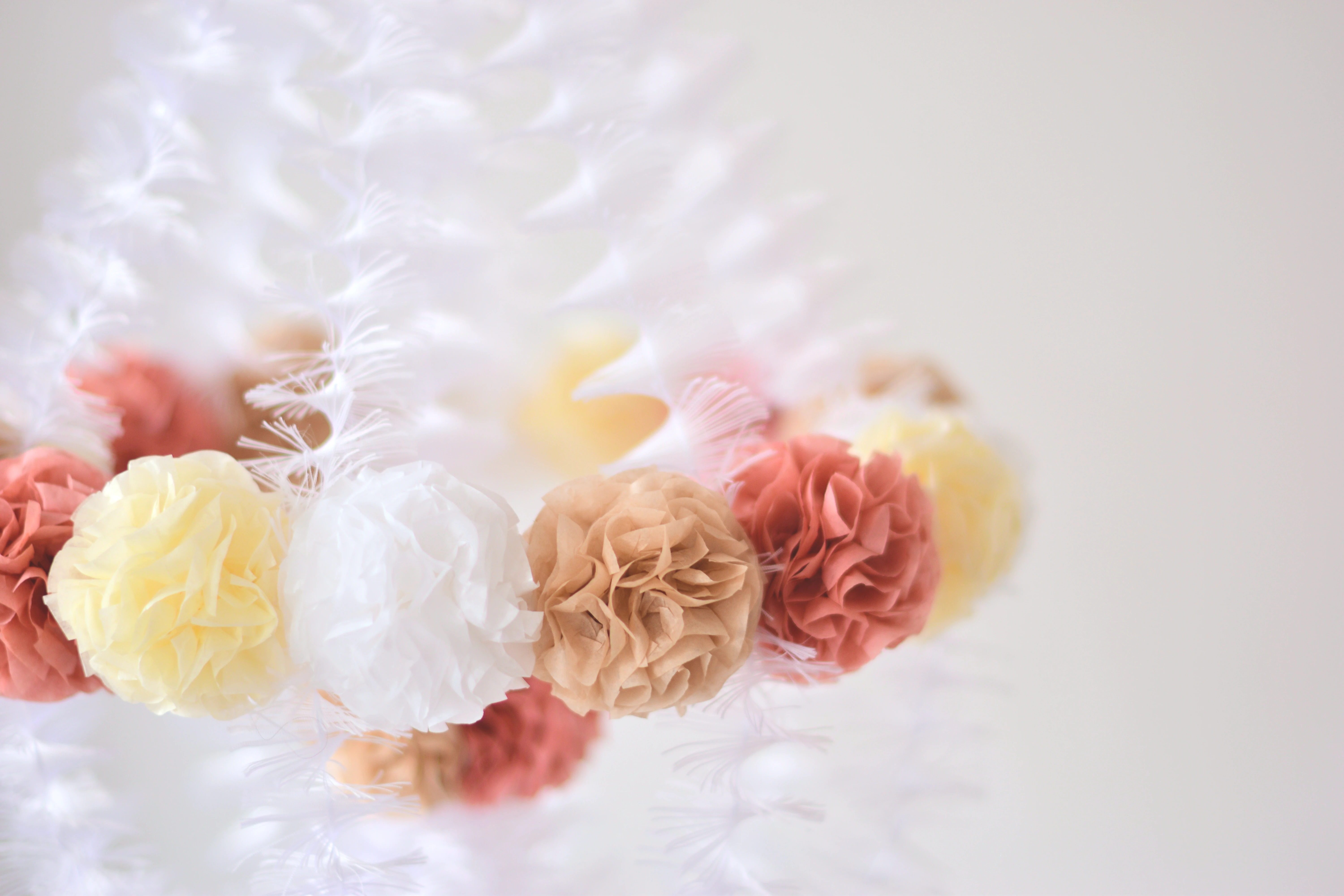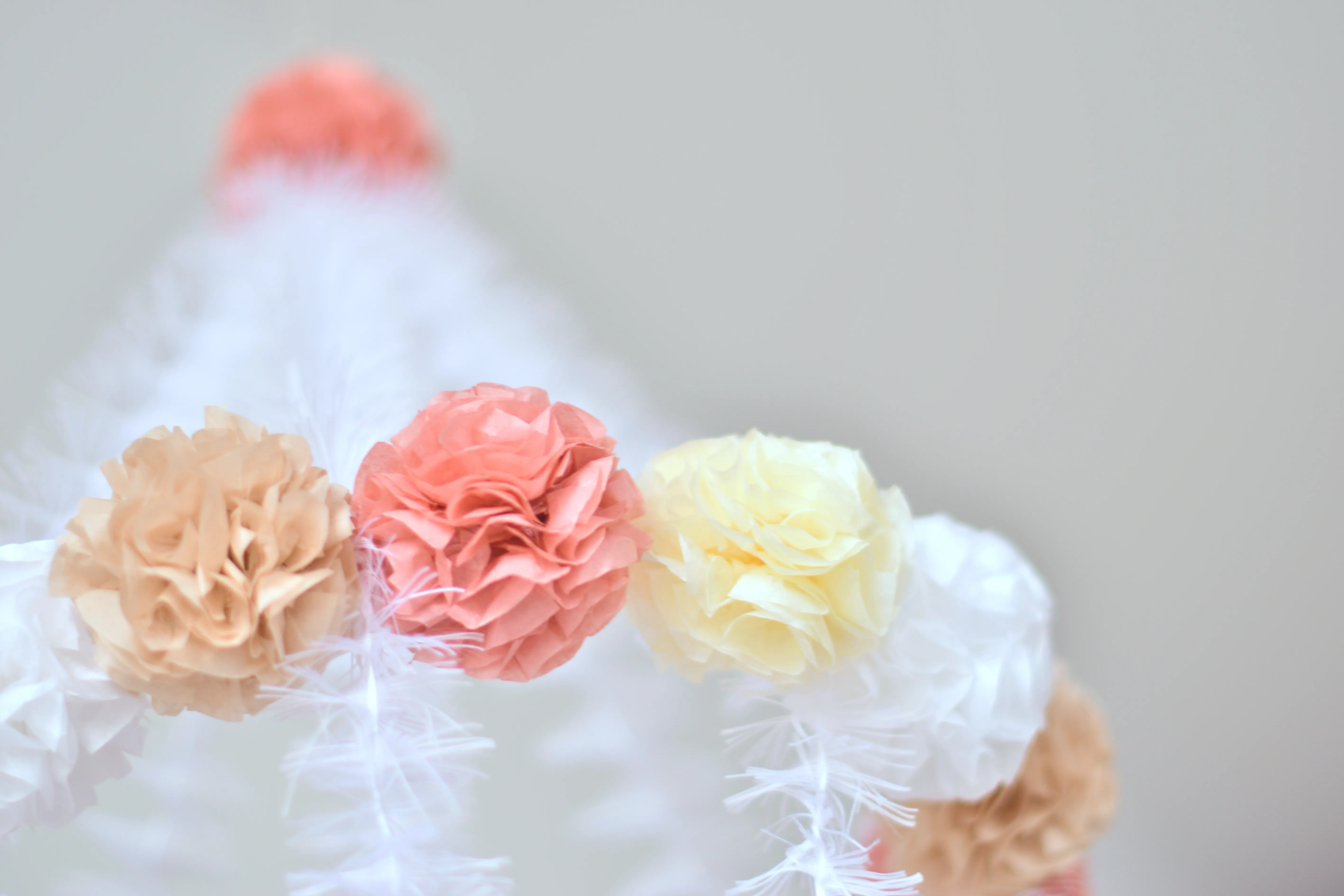 Materiał: biała tasiemka satynowa z recyklingu (polski producent), bibułka, obręcz metalowa (polski producent), nici bawełniane (polski producent)