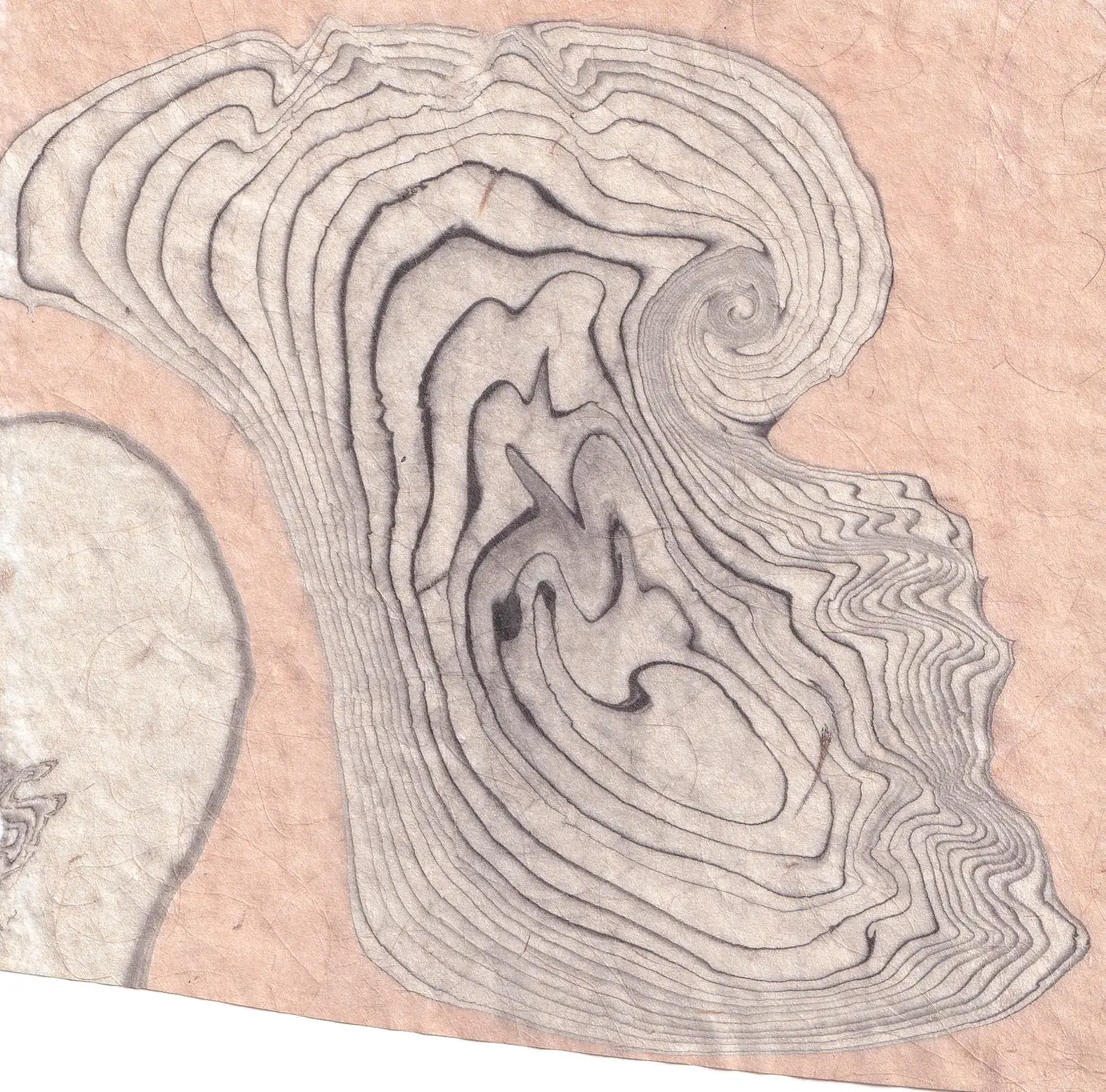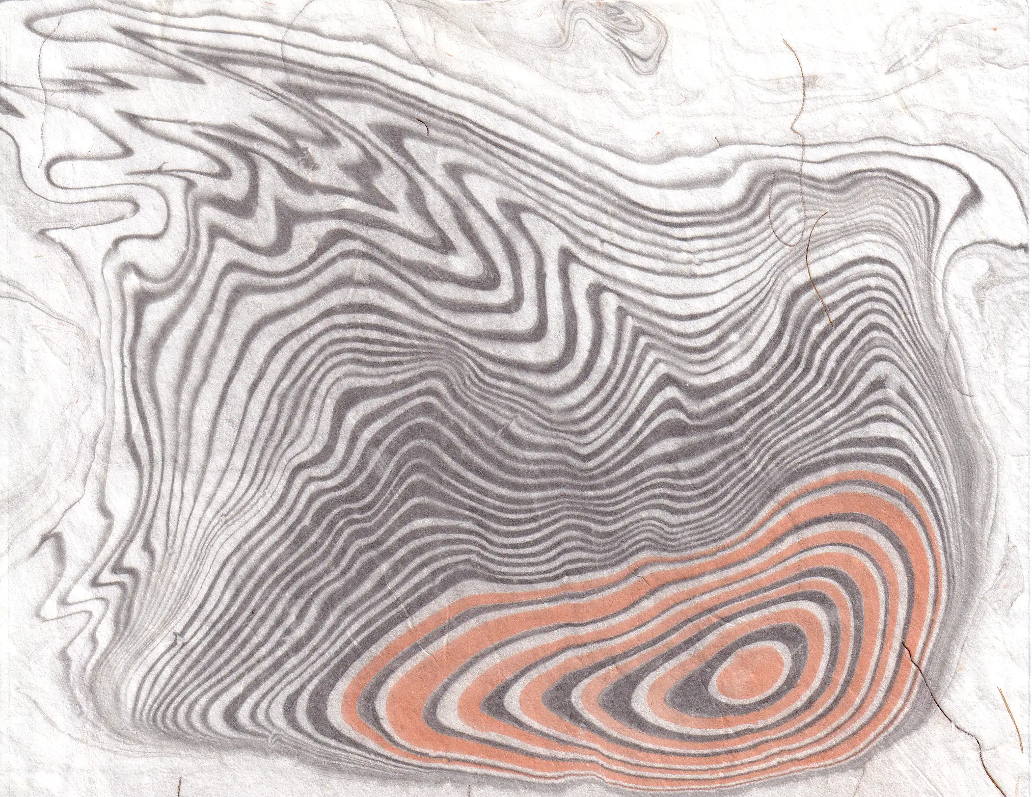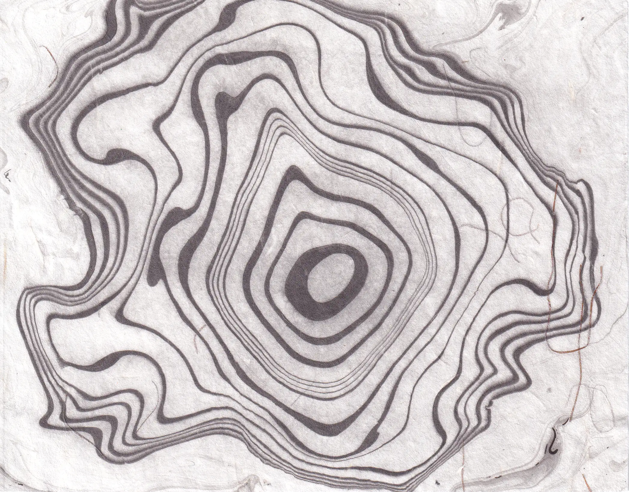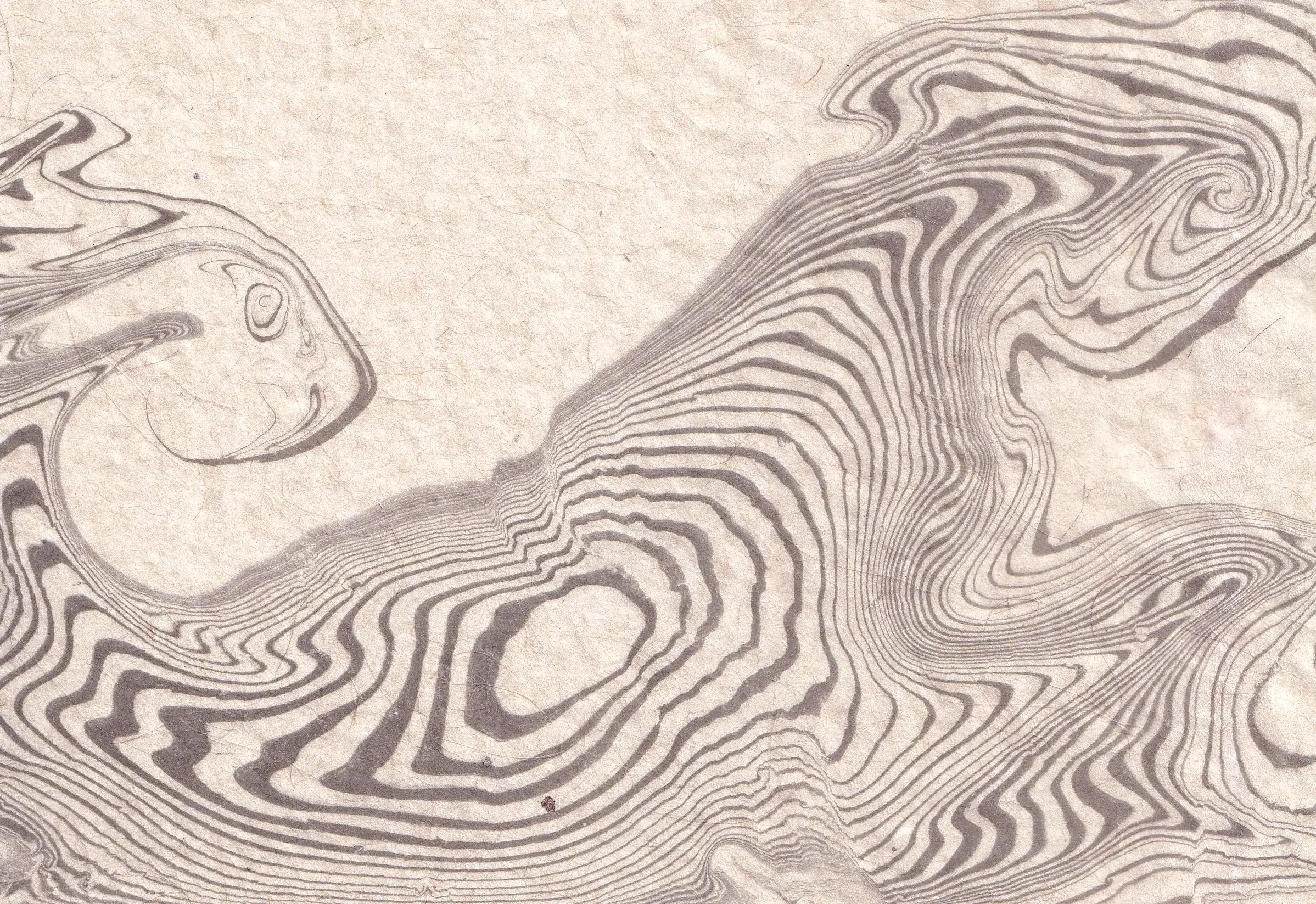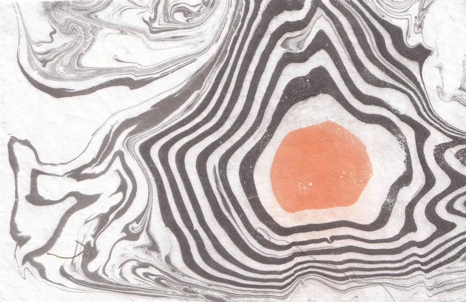 Suminagashi to tradycyjna japońska technika zdobienia papieru, znana od co najmniej XII wieku. Słowo to oznacza dosłownie „pływający tusz”. Tworzenie grafik za pomocą tej techniki polega na delikatnym nakładaniu odpowiedniego rodzaju tuszu na powierzchnię wody. Dzięki napięciu powierzchniowemu tusz nie miesza się od razu z cieczą, lecz tworzy rozchodzące się koncentrycznie wzory. Naprzemienne używanie pędzla z tuszem i pędzla czystego pozwala na tworzenie unikatowych, organicznych rysunków. To technika niezwykle relaksująca i medytacyjna, w której twórca nie ma dużej kontroli nad ostatecznym kształtem dzieła. Ruch wody, oddech, przejeżdżający obok samochód – wszystko może wpłynąć na ostateczny wygląd wzoru.