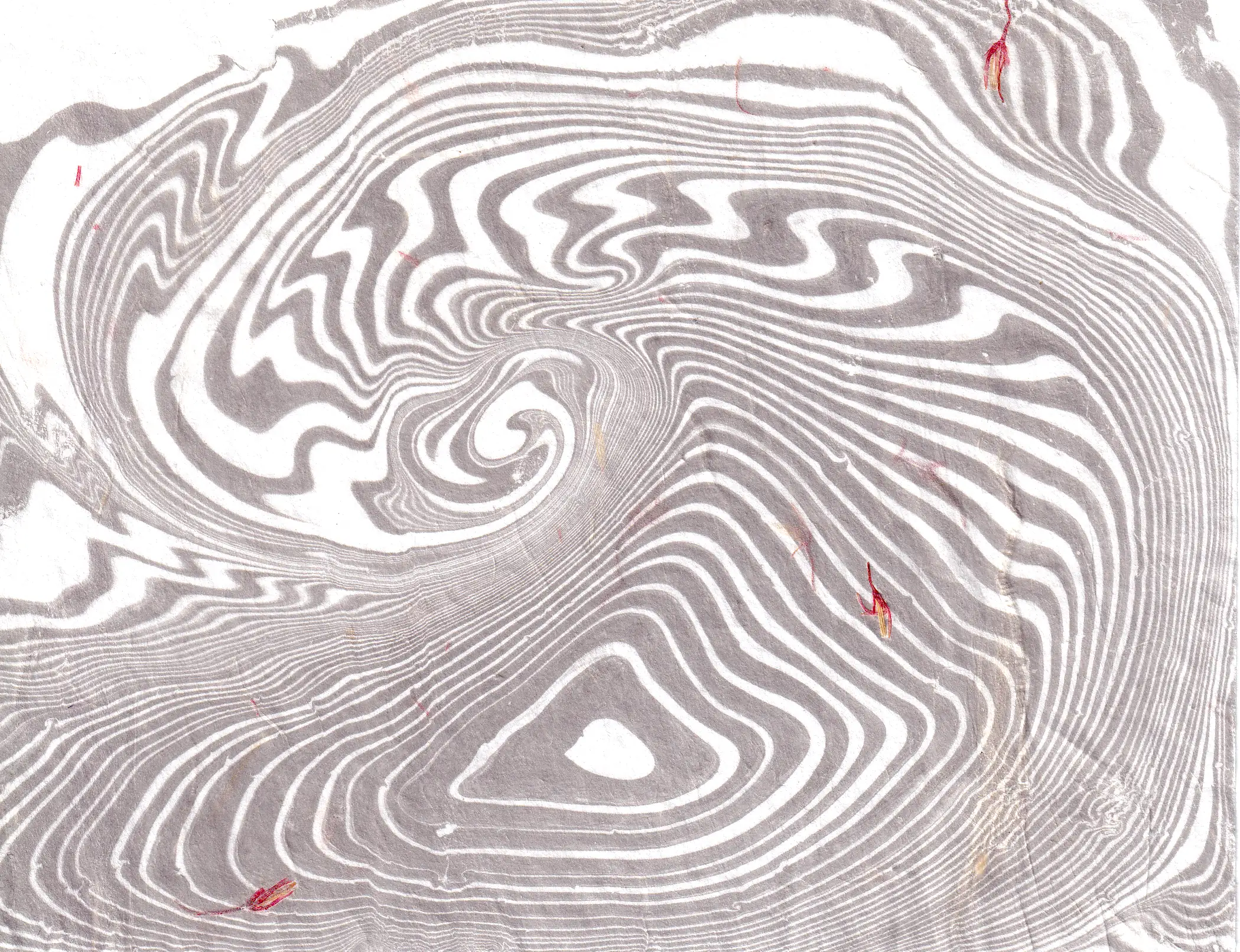 Odbitki suminagashi tradycyjnie wykonuje się na niezaklejanym japońskim papierze washi, najczęściej z włókien kozo (morwy papierowej). Charakteryzuje się on wysoką chłonnością i dużą wytrzymałością na wilgoć, co jest tu szczególnie istotne. Papier washi jest jednak dość drogi i w Polsce słabo dostępny. Nie sprawdzi się najlepiej do eksperymentowania z nową techniką. Przetestowałam różne rodzaje chłonnych, niepowlekanych papierów. Jedne sprawdziły się lepiej, inne nieco gorzej. Każdy z nich dał zupełnie inne efekty.