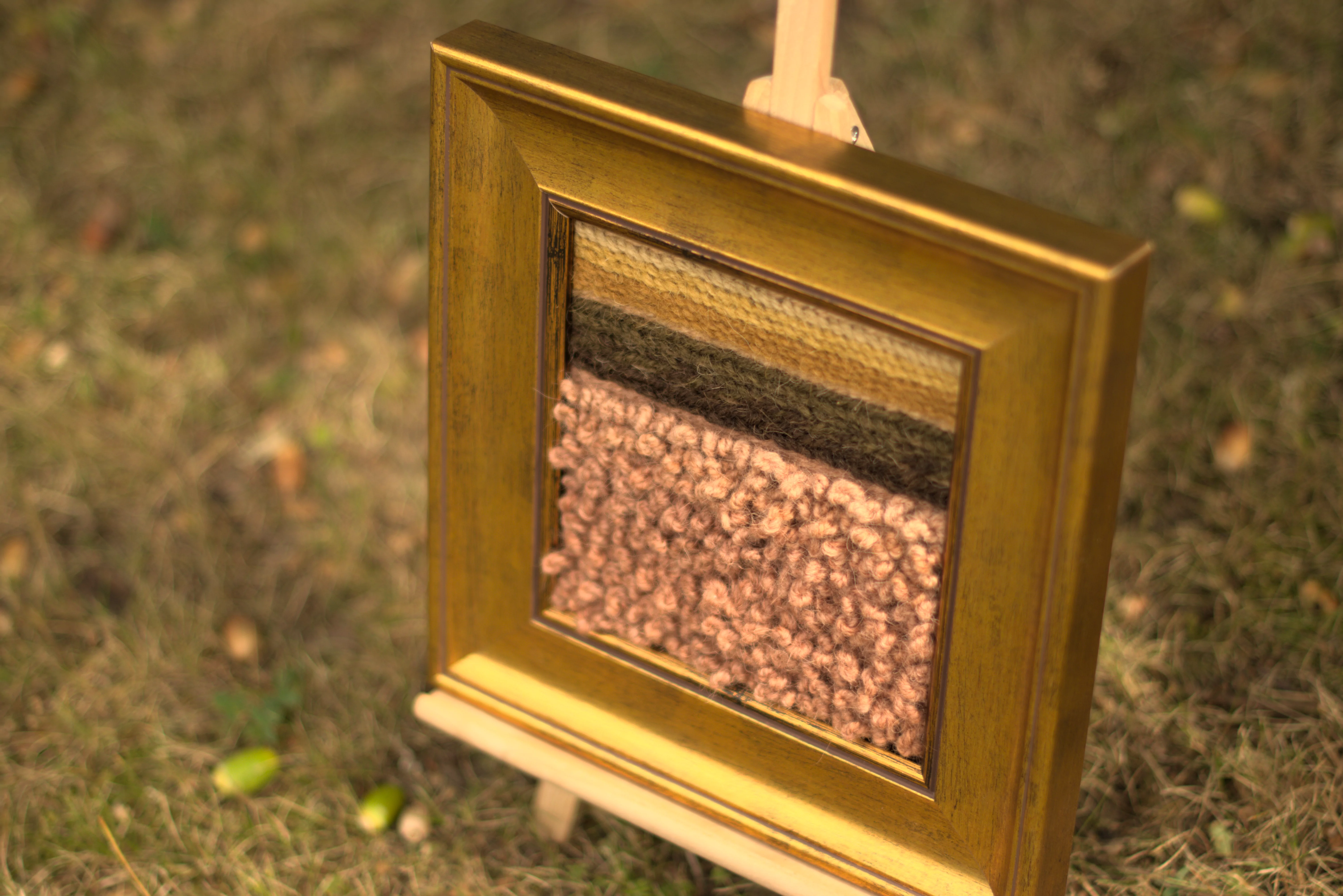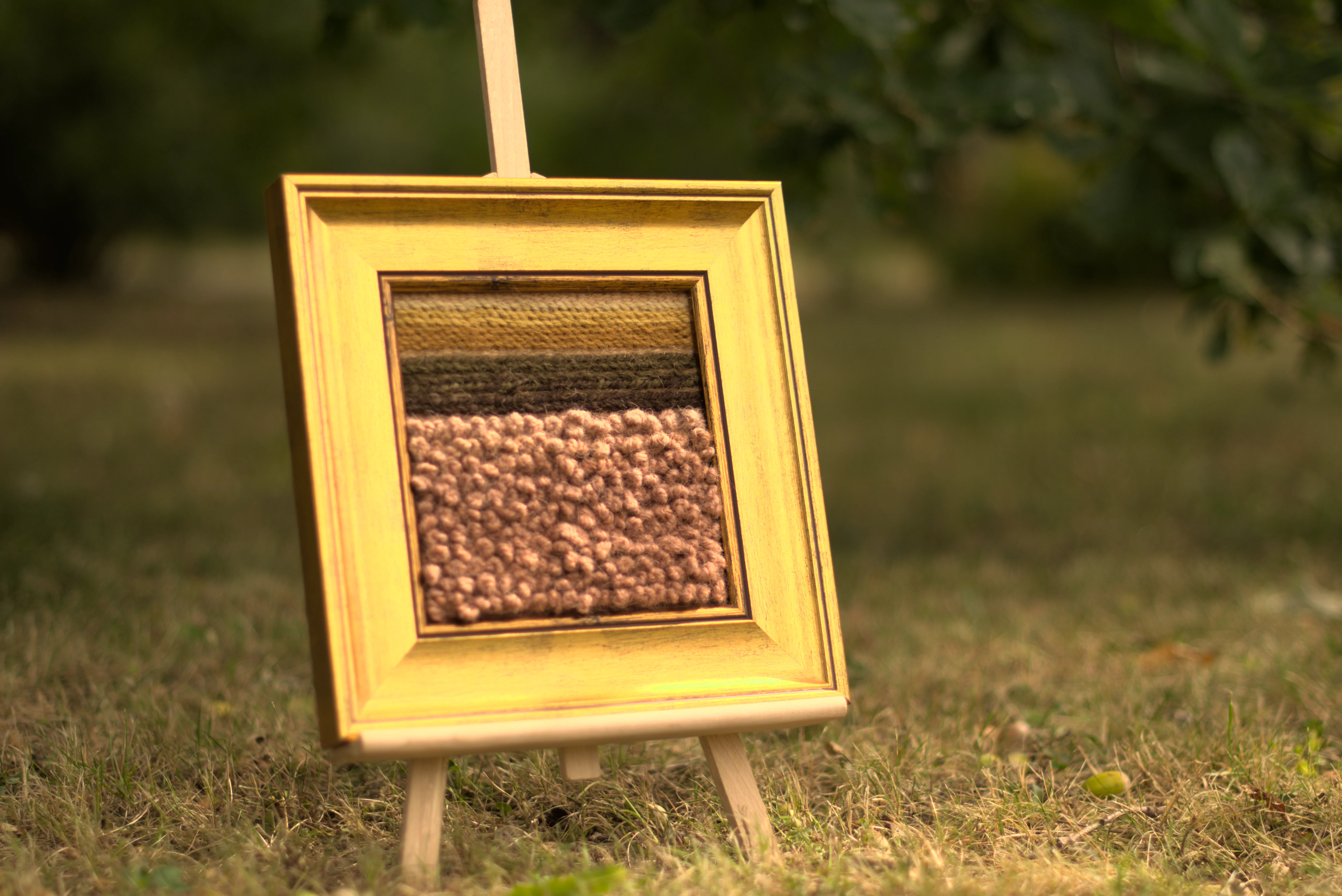 Kolory (z) Natury – seria miniatur tkackich wykonanych w całości z polskiej wełny owczej, którą barwię za pomocą barwników pozyskanych samodzielnie z roślin. W tej serii wykorzystuję ograniczoną paletę splotów tkackich oraz proste geometryczne i organiczne formy, by jak największą przestrzeń zostawić naturalnym barwom. Tworzę projekty łączące kolory z różnych roślin, a także tzw. studia kolorystyczne, skomponowane z palety barw uzyskanych z jednej rośliny. Eksploruję w nich zjawisko kontrastu symultanicznego, polegającego na tym, że kolor i jego nasycenie postrzegamy w kontekście otoczenia, np. koloru tła czy sąsiadującej przędzy. Zamknięte w miniaturowej tkaninie cuda przyrody oprawiam w okazałe złote ramy, które mają przypominać o tym, że to właśnie natura powinna stanowić dla człowieka jedną z najwyższych wartości.