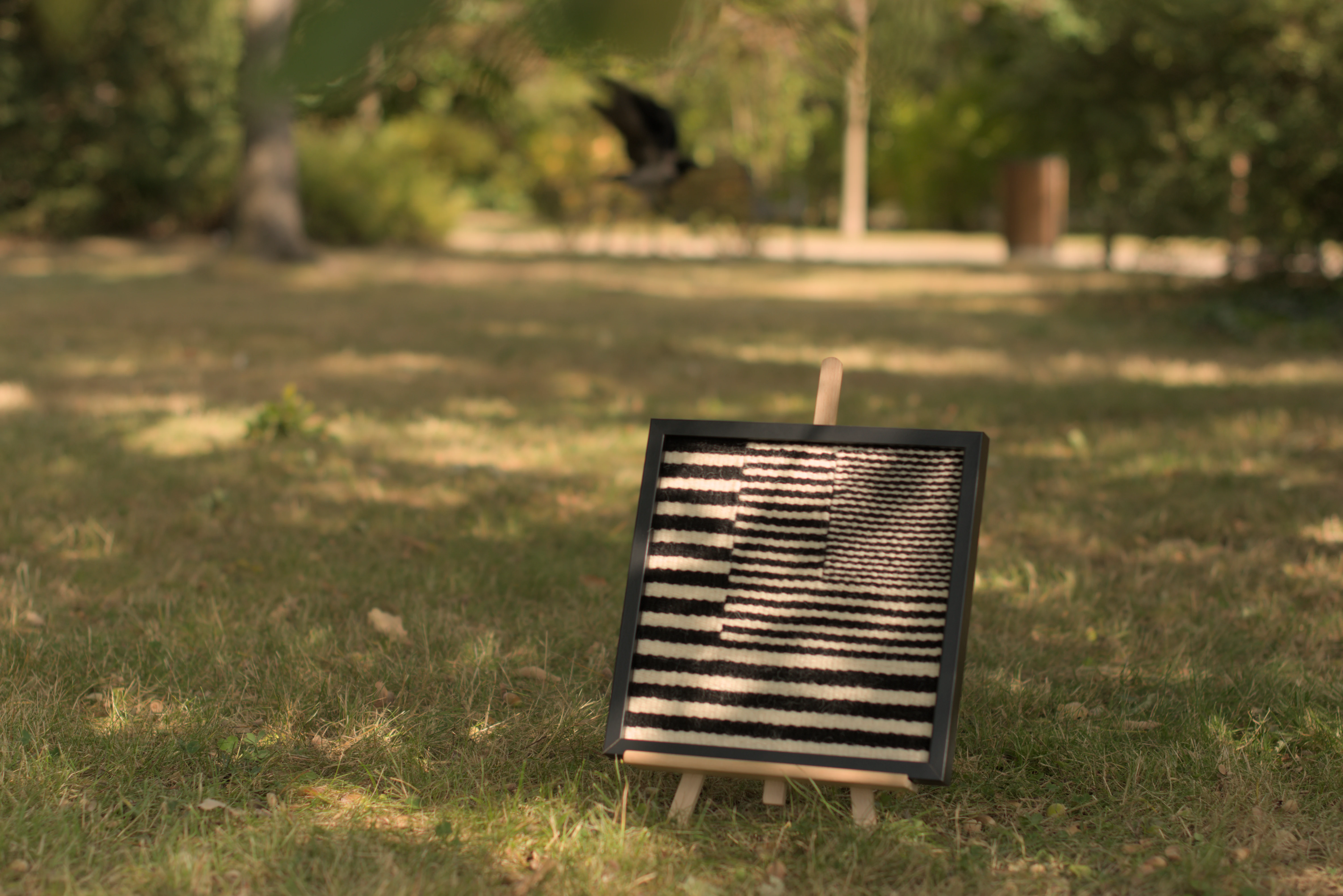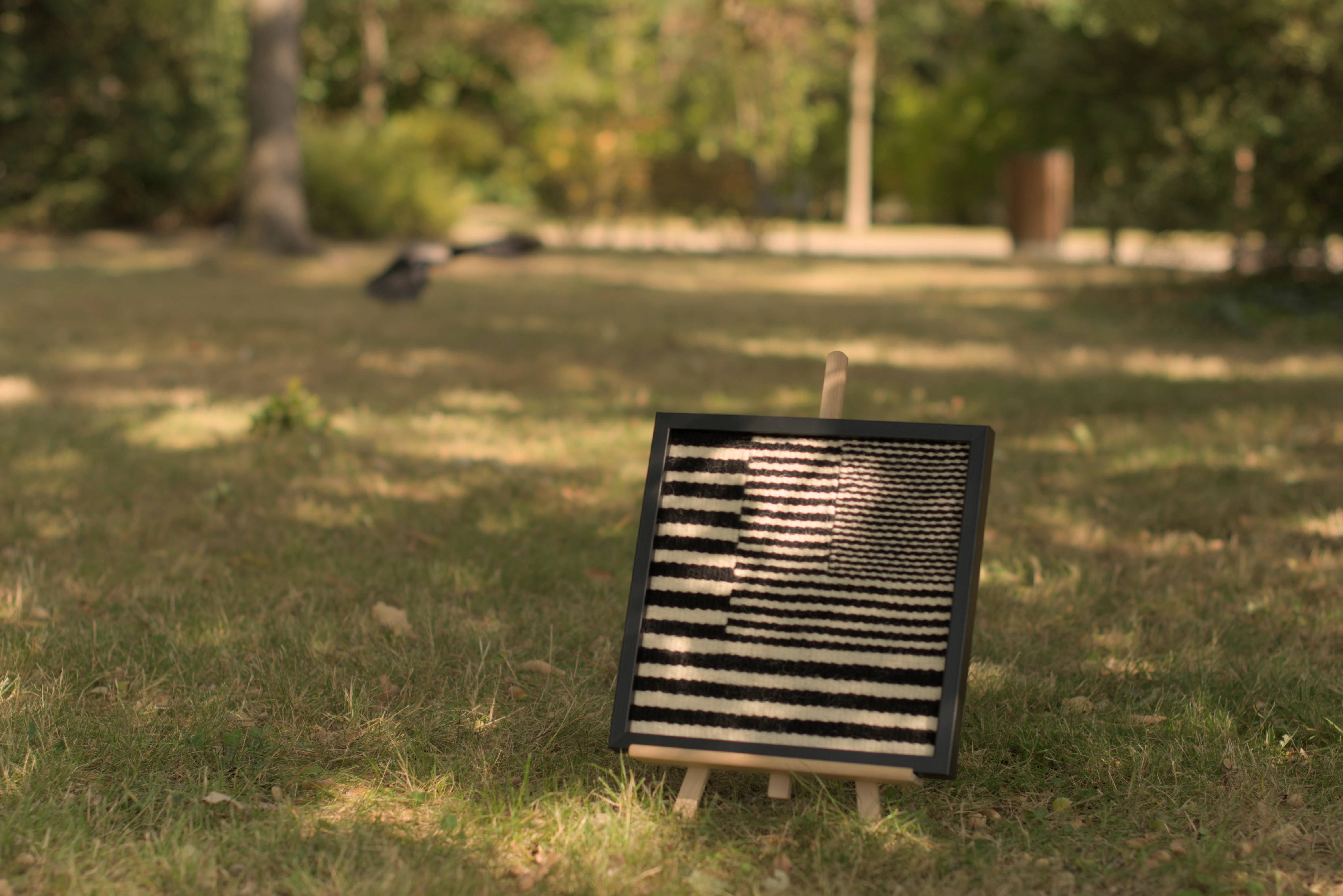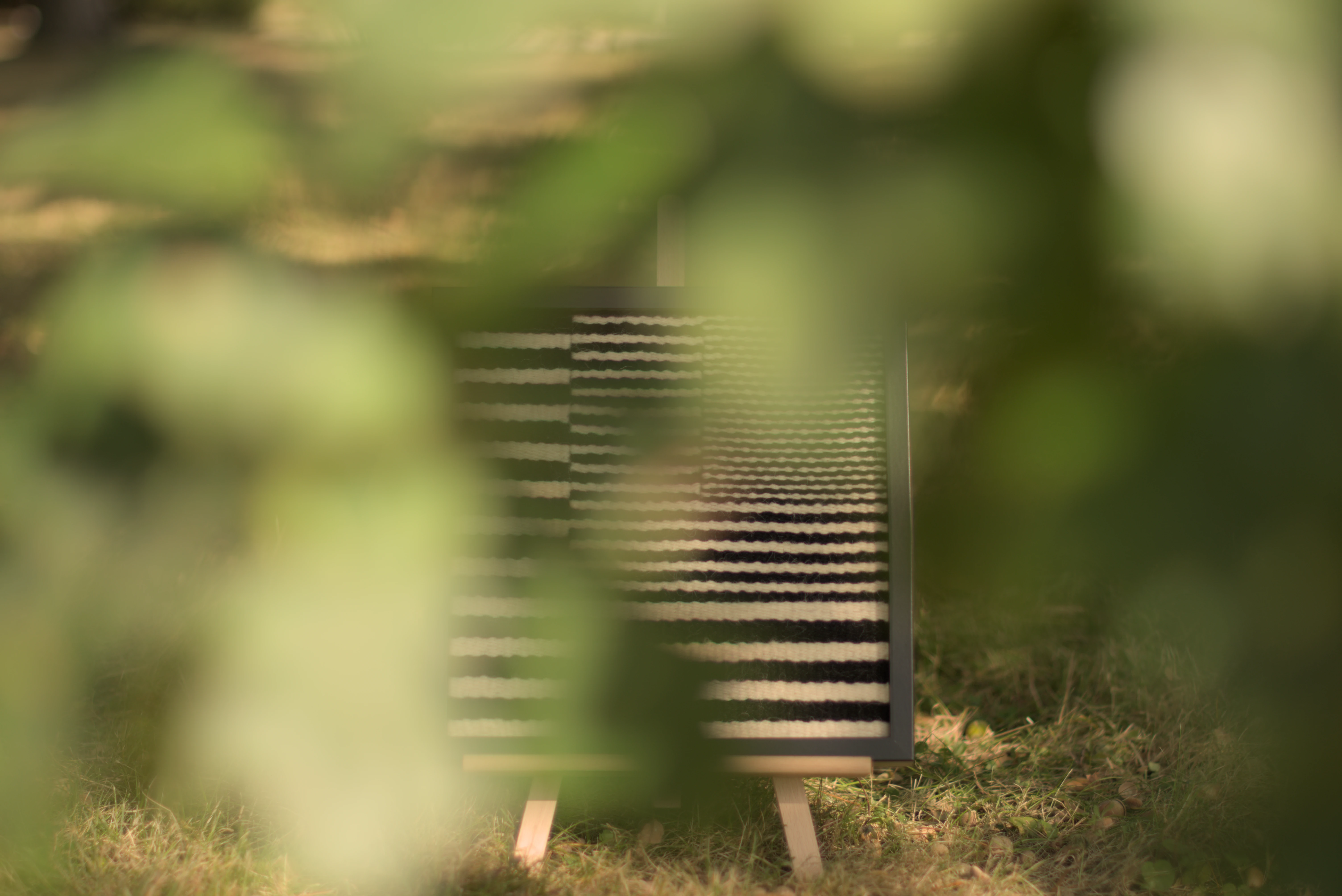 Czarne/Białe – seria miniatur tkackich eksplorujących rytm i napięcie między formami geometrycznymi, wykorzystująca kontrast między dwoma kolorami wełny, czarnym i białym.