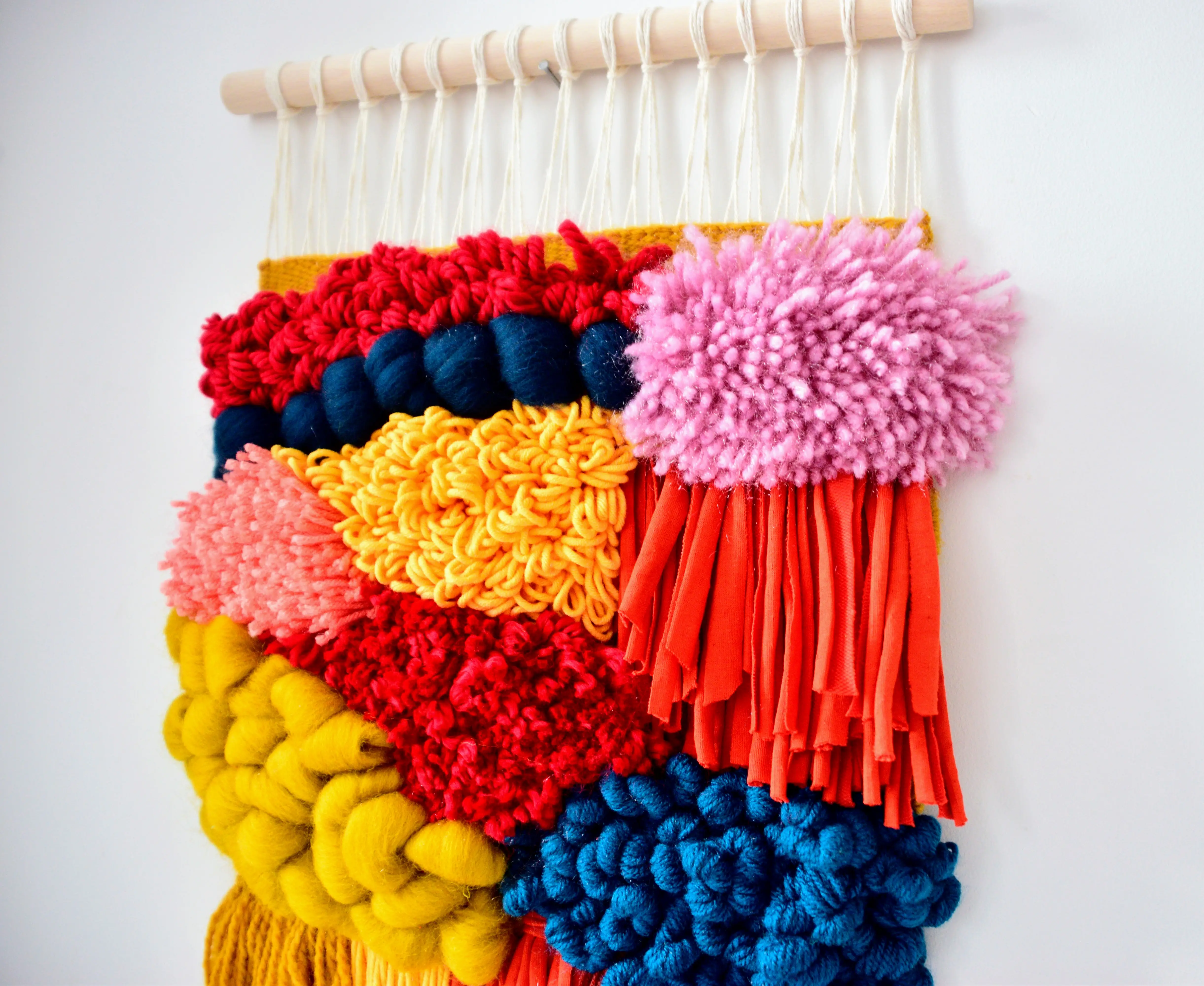 Materiał: bawełna, mieszane przędze z recyklingu, wełna, drążek bukowy (polski producent)