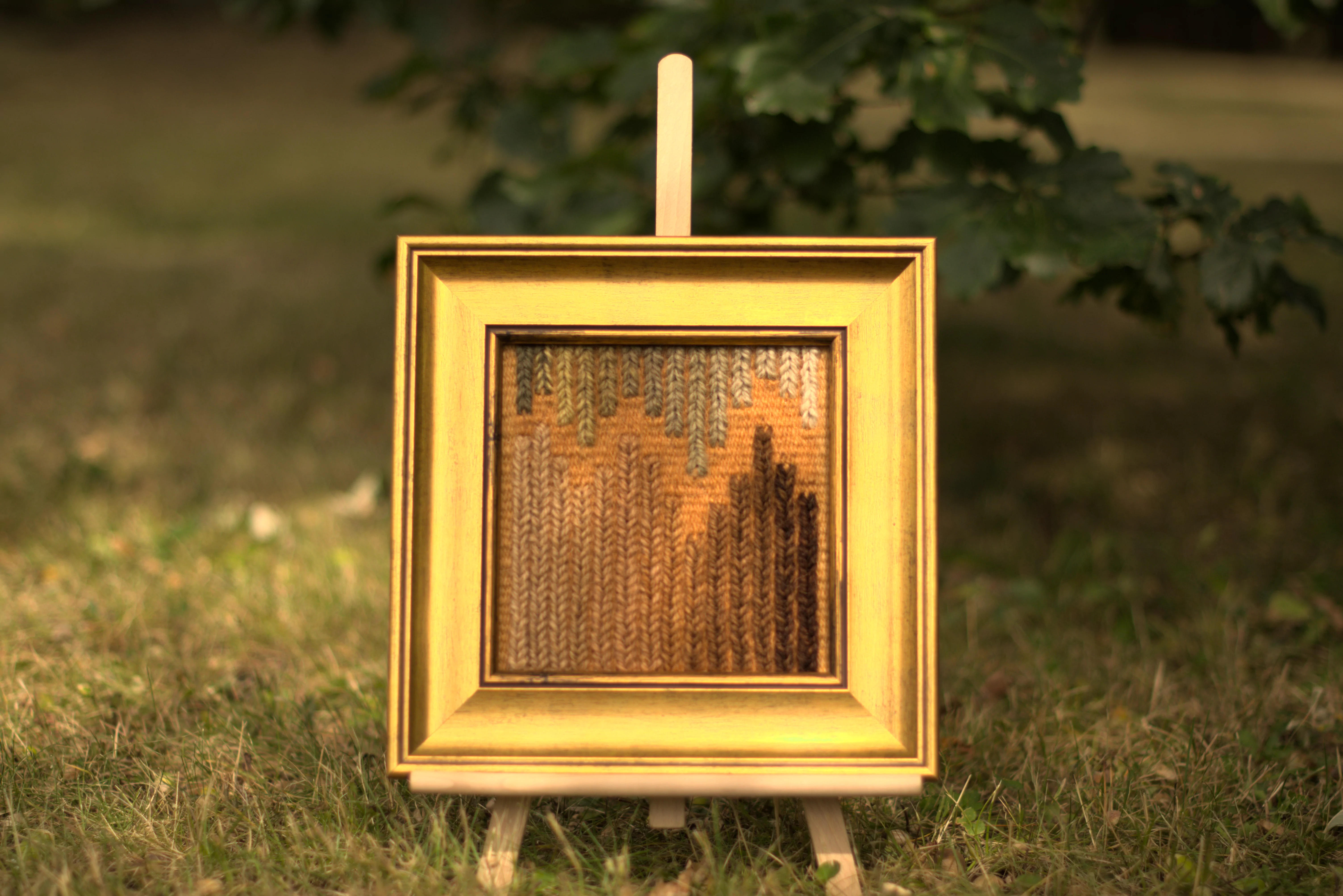 Kolory (z) Natury – seria miniatur tkackich wykonanych w całości z polskiej wełny owczej, którą barwię za pomocą barwników pozyskanych samodzielnie z roślin. W tej serii wykorzystuję ograniczoną paletę splotów tkackich oraz proste geometryczne i organiczne formy, by jak największą przestrzeń zostawić naturalnym barwom. Tworzę projekty łączące kolory z różnych roślin, a także tzw. studia kolorystyczne, skomponowane z palety barw uzyskanych z jednej rośliny. Eksploruję w nich zjawisko kontrastu symultanicznego, polegającego na tym, że kolor i jego nasycenie postrzegamy w kontekście otoczenia, np. koloru tła czy sąsiadującej przędzy. Zamknięte w miniaturowej tkaninie cuda przyrody oprawiam w okazałe złote ramy, które mają przypominać o tym, że to właśnie natura powinna stanowić dla człowieka jedną z najwyższych wartości.