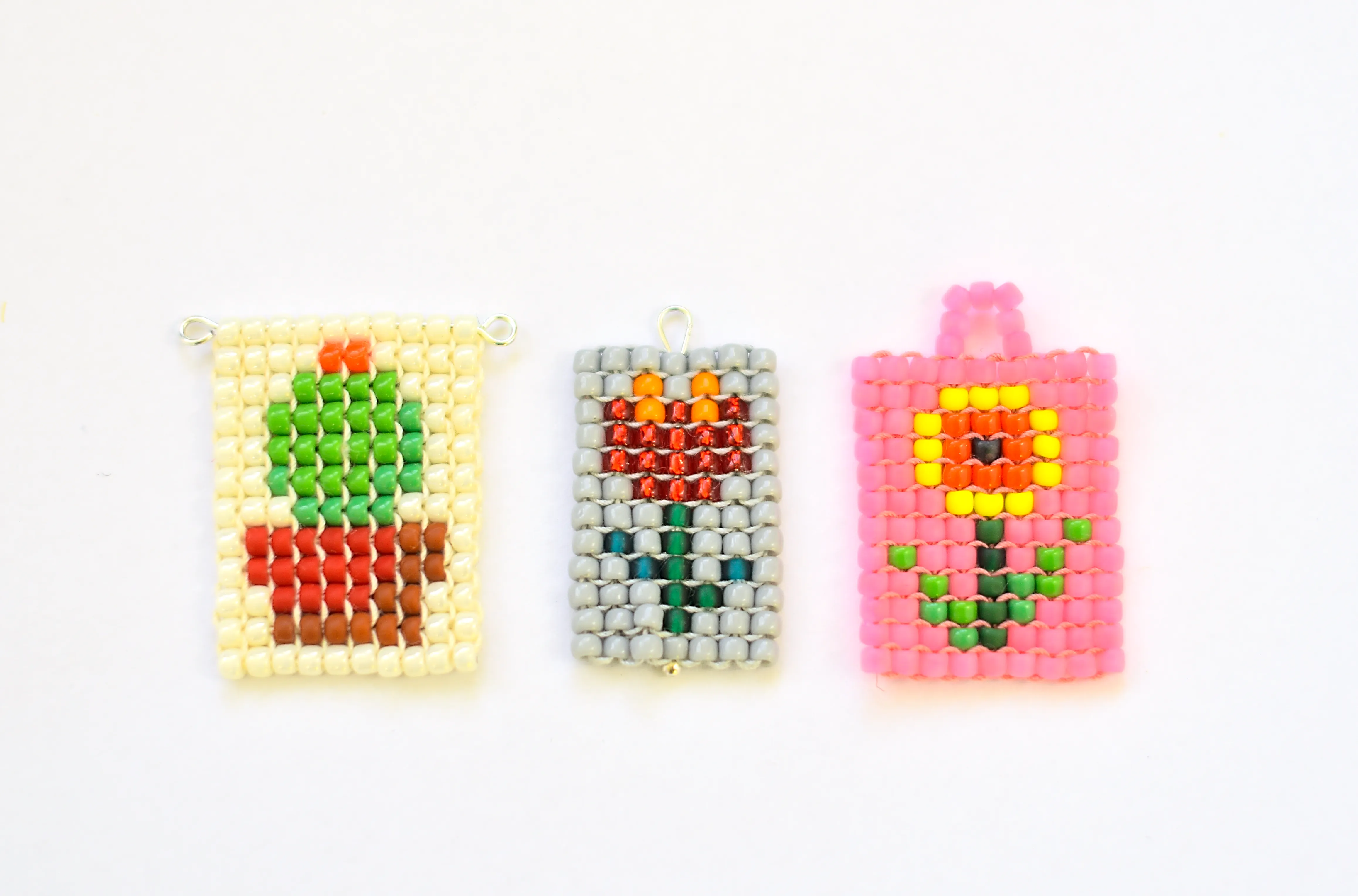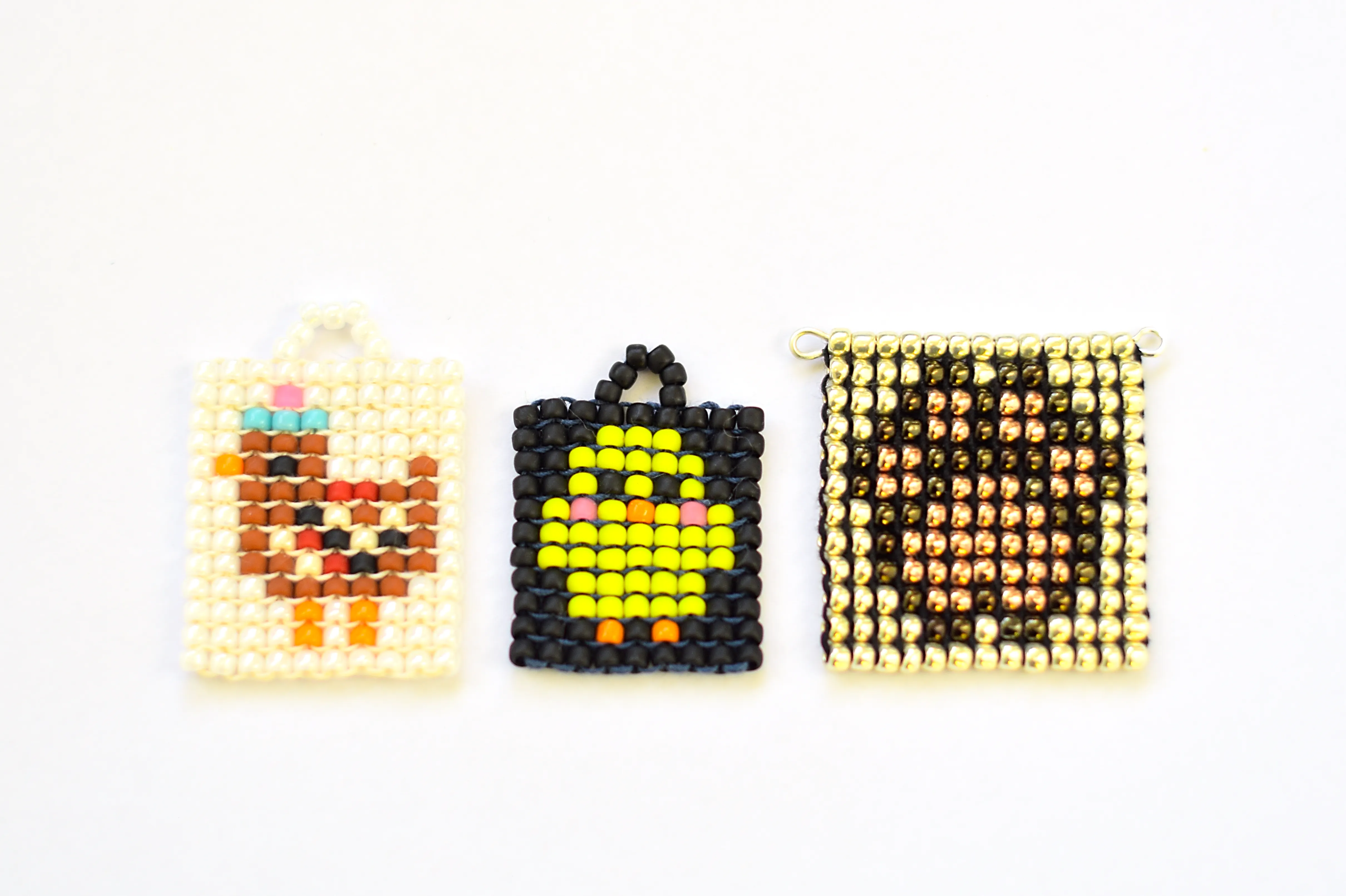 Z kolorowych szklanych koralików oraz bawełnianych nici można wykonać najróżniejsze wisiorki, z dowolnym wzorem. Technika „tkania” koralikami przypomina nieco klasyczne tkanie i jest równie wciągająca. Prezentowana w tym wpisie kolekcja pokazuje dużą rozpiętość tematyki, estetyki oraz wykończenia koralikowych wisiorków. Można je zawiesić na rzemyku, lince jubilerskiej lub łańcuszku.